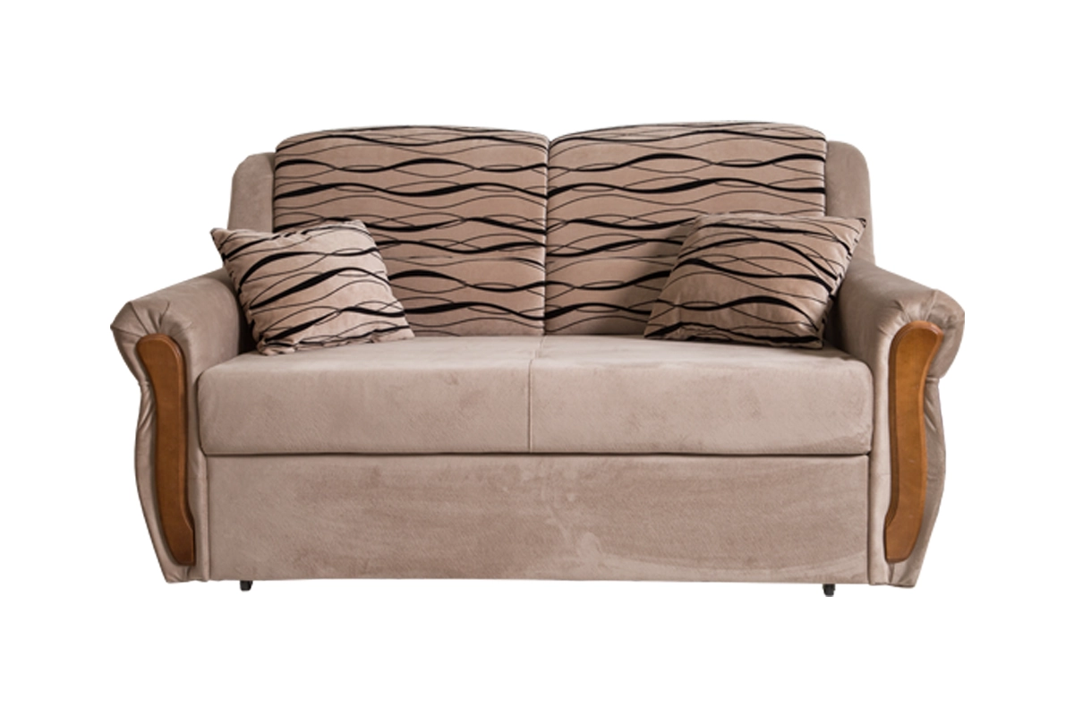 Prostrani trosjed sa dekorativnim drvenim detaljima i funkcijom razvlačenja nudi udobnost za svakodnevno korištenje i dodatni ležaj za goste. Kompaktan dvosjed opremljen je mehanizmom za razvlačenje i kutijom za odlaganje, idealan za manje prostore. Klasična fotelja sa zaobljenim naslonima i kombinacijom tkanine i drveta donosi završni pečat elegancije i potpune udobnosti vašem prostoru.